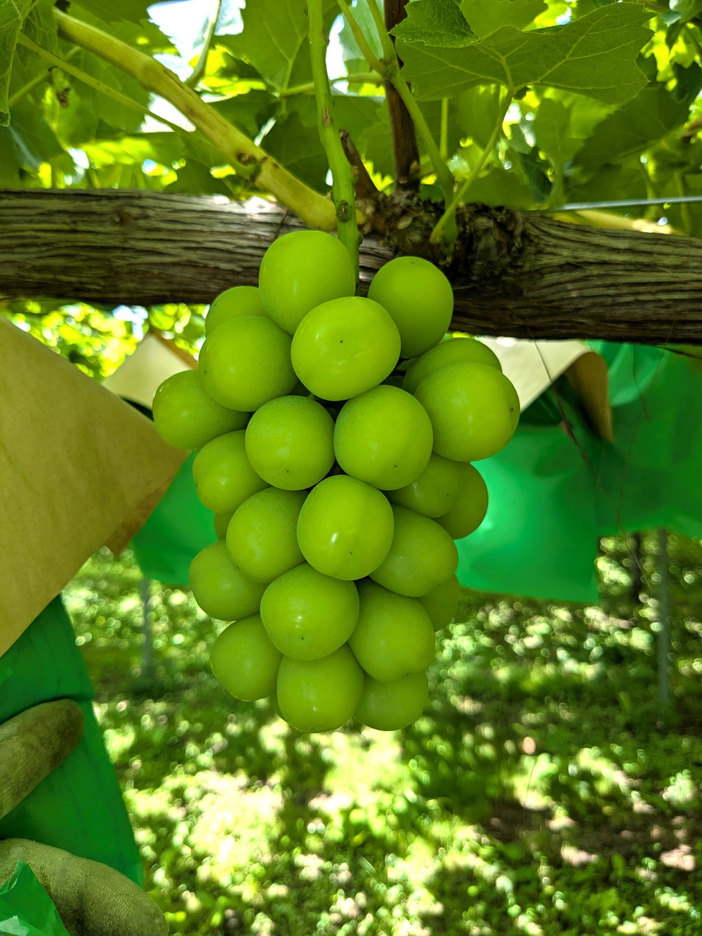 今年のシャイマスカットは、中~大粒でぷりぷり感があり、食べ飽きないすっきりとした甘さが程良い味に仕上がっております。