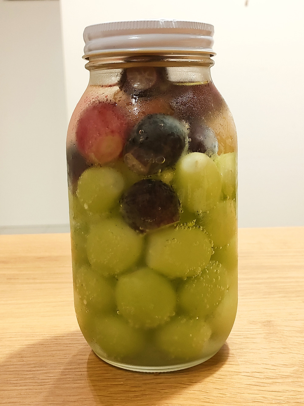 強炭酸に漬けてシュワシュワのシャインマスカットにしたり、