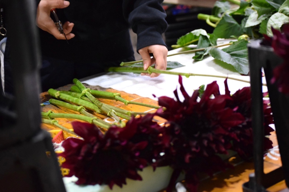 ダリア摘み取りのようす