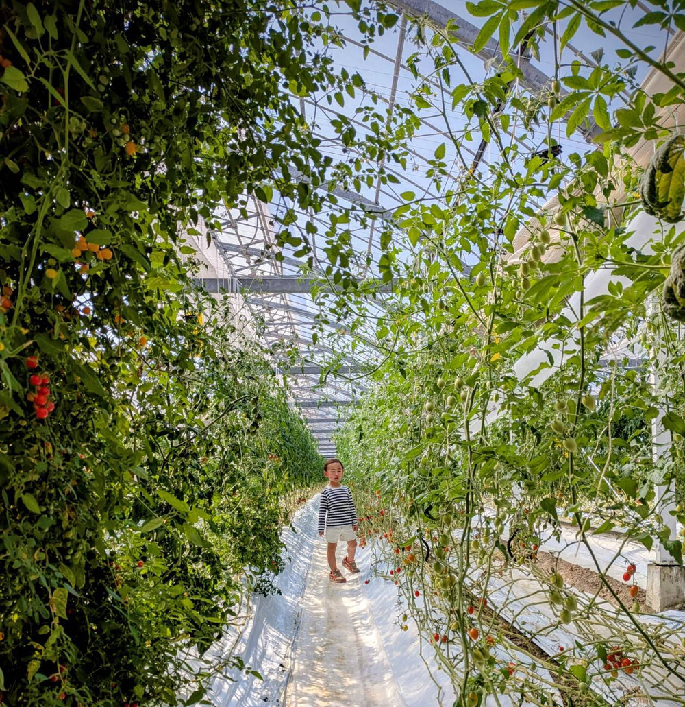 今日は子供と一緒にハウスの見回りです。