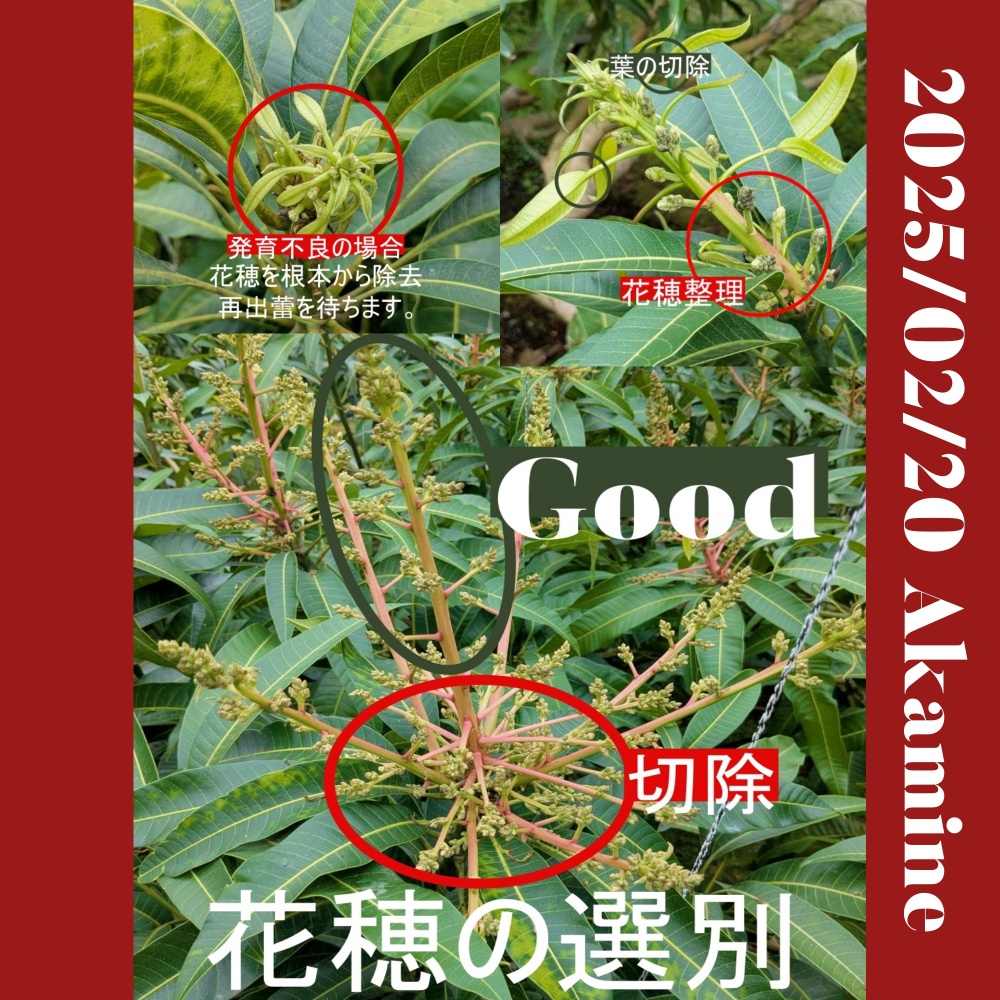 開花期の作業です。花穂を整えることで実の付き方がよくなります。