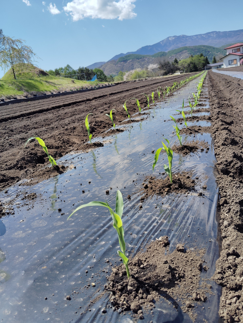 ゴールデンウィークの後半、嬬恋村も良い天気に恵まれました。今日は、ハウスで育ってきたとうもろこしの定植をおこないました。これから夏いっぱい、とうもろこしの種まき〜定植〜収穫・販売が続きます。今年も甘くて身がぎっしりのとうもろこしがたくさんできるよう、日々頑張っていきます。