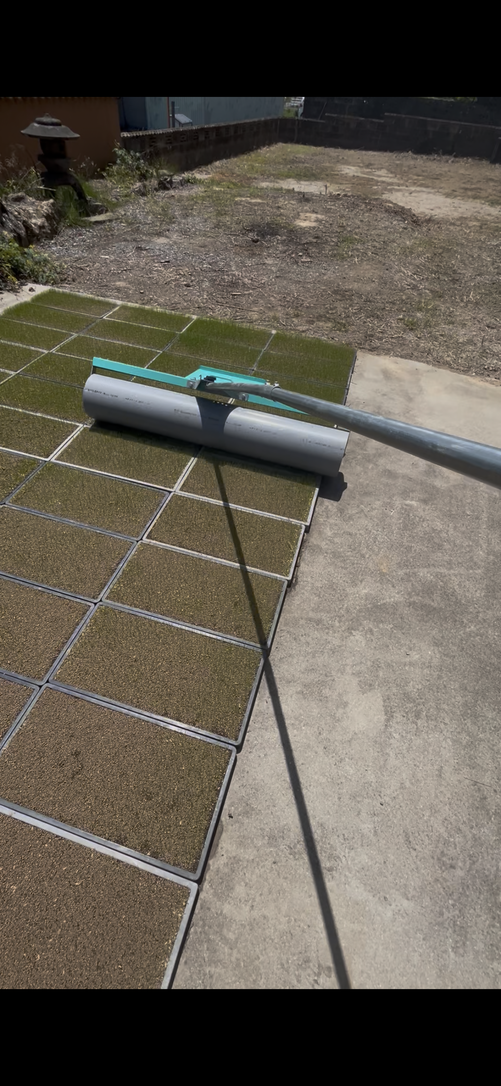 今日は、一番早く販売できる歓喜の風の苗に健苗ローラーを掛けました。