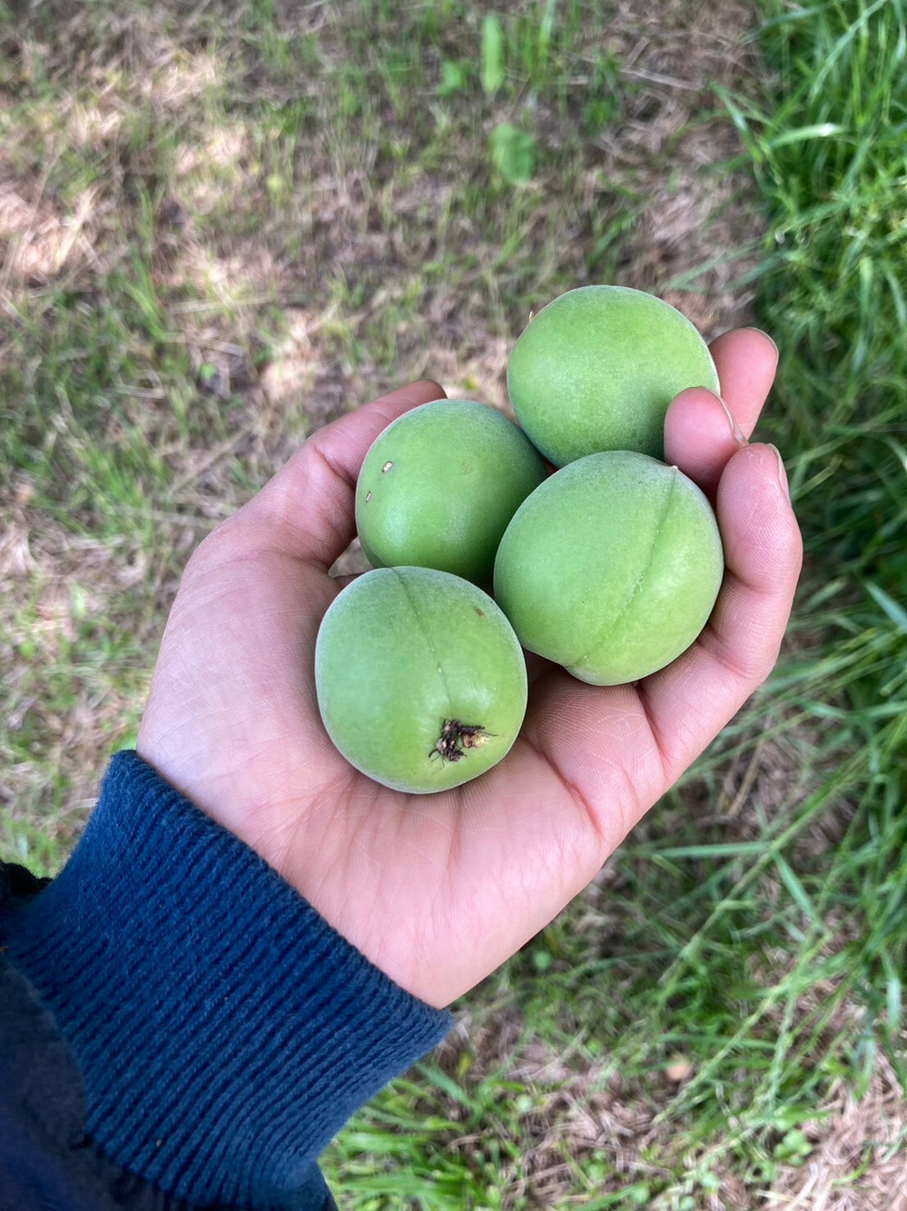 織姫は粒が大きめで、甲州小梅は緑色が織姫より少し濃いという特徴があります。収量は少ながったですが、ほとんどがきれいな状態だったので、ホッとしました。