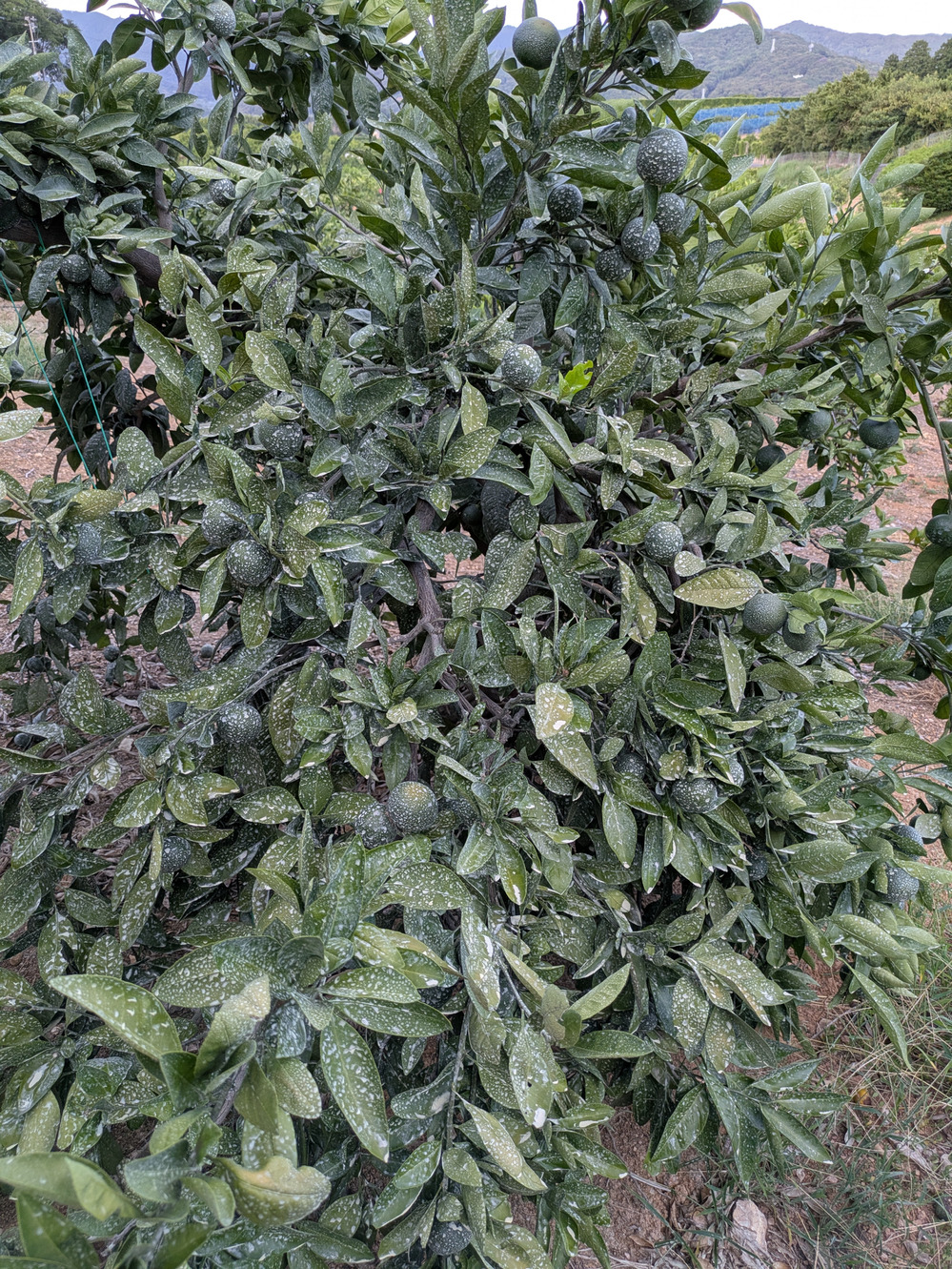 この石灰硫黄合剤はアルカリ性の農薬なので散布することで樹体を一旦弱アルカリ性に傾けます。