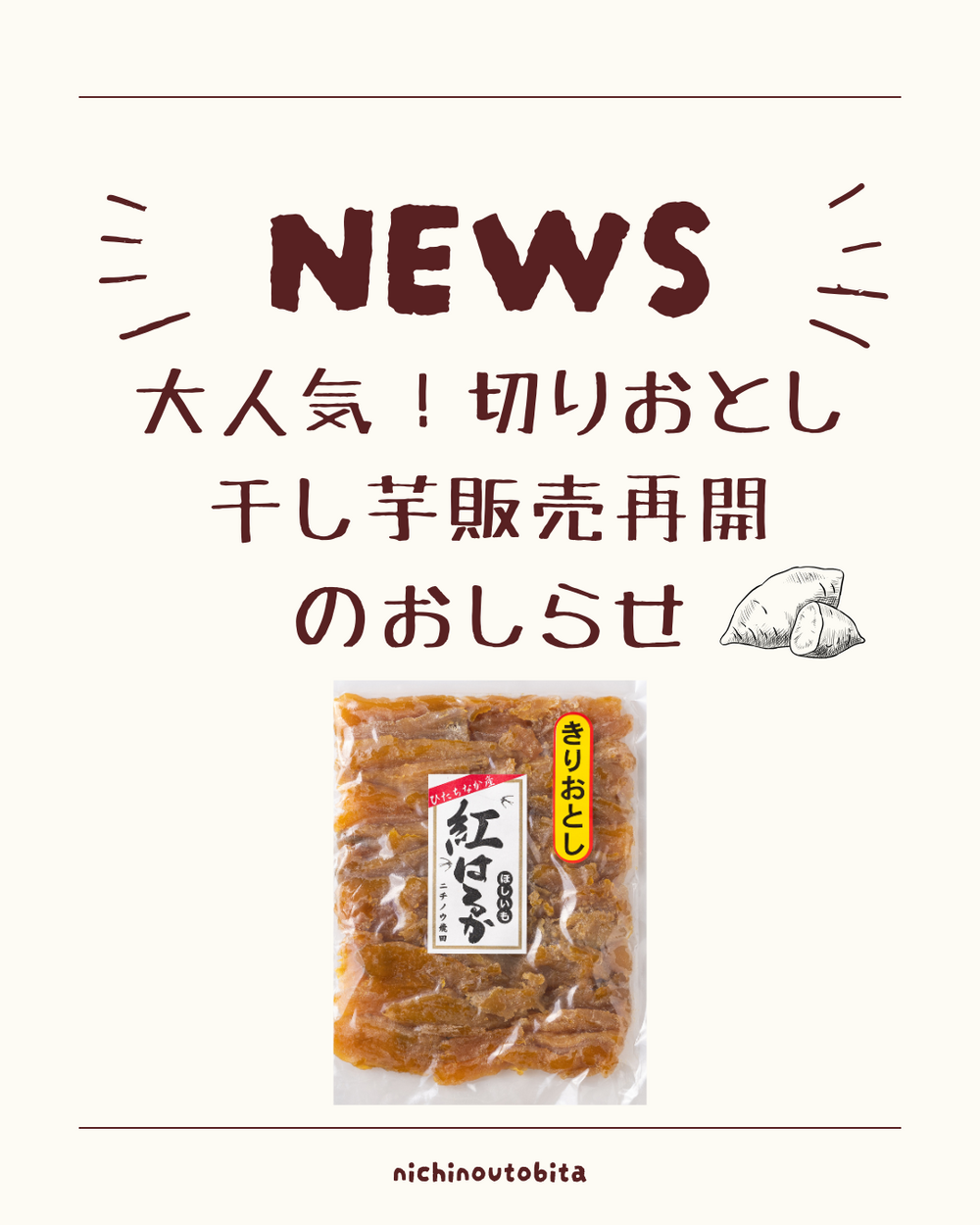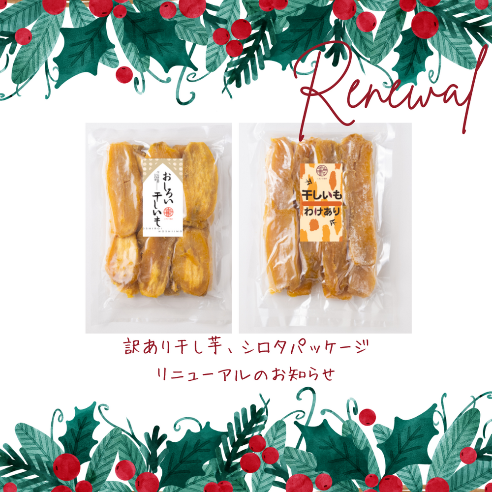 つきましては今後も安心、安全且つ高品質な商品を継続してご提供するため、下記のとおり、干し芋製品の価格を改定させて頂くことと致しました。