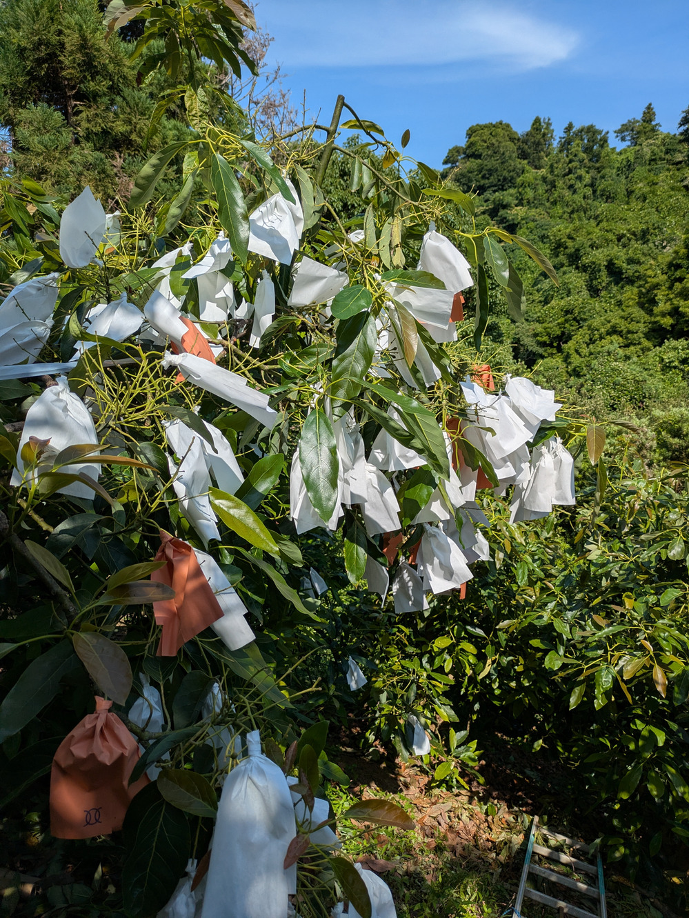今年もアボカドの袋かけをしています!農薬を使用しないので、袋かけは必須の作業ですが、今年は異常に温度が高いので大変です!頑張って美味しいアボカドをお届けします!宜しくお願いします!