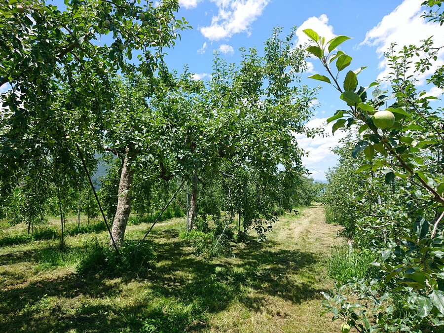 主な園地は三郷という地区にあります。最近の気候変動により苦労することが多くなってきましたが、土質や水に恵まれ標高もあるため美味しいりんごが育ちます。これから先も良質なりんごの栽培を続けていくために品種や台木、木の仕立て方を模索しています。