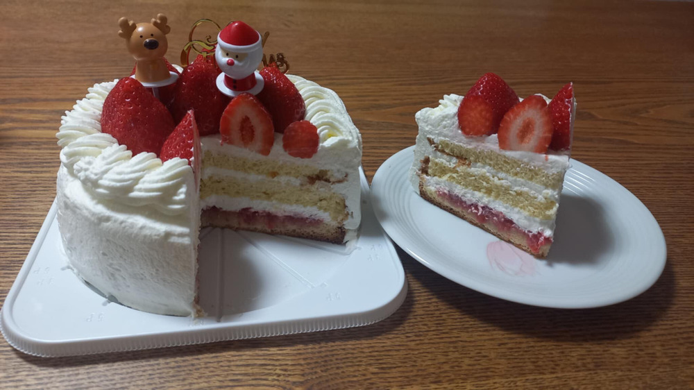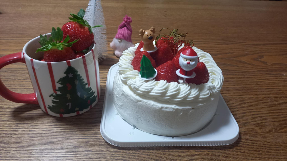 まだちょっと早いですが、娘が会社で採れたイチゴでクリスマスケーキを作ってくれました。