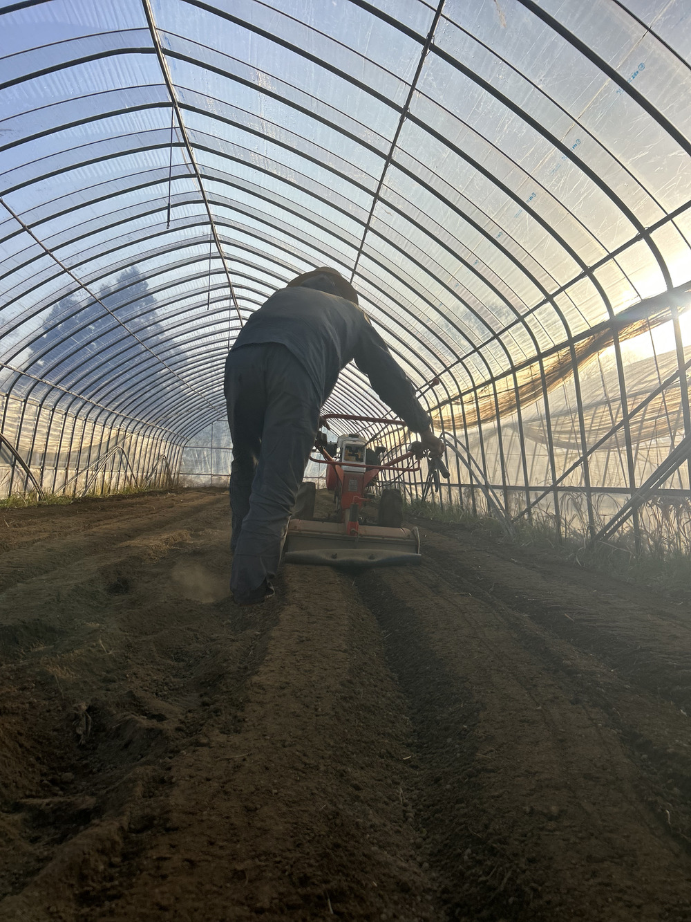機械が耕した後に足跡を付けないように、慎重に操作しています👣