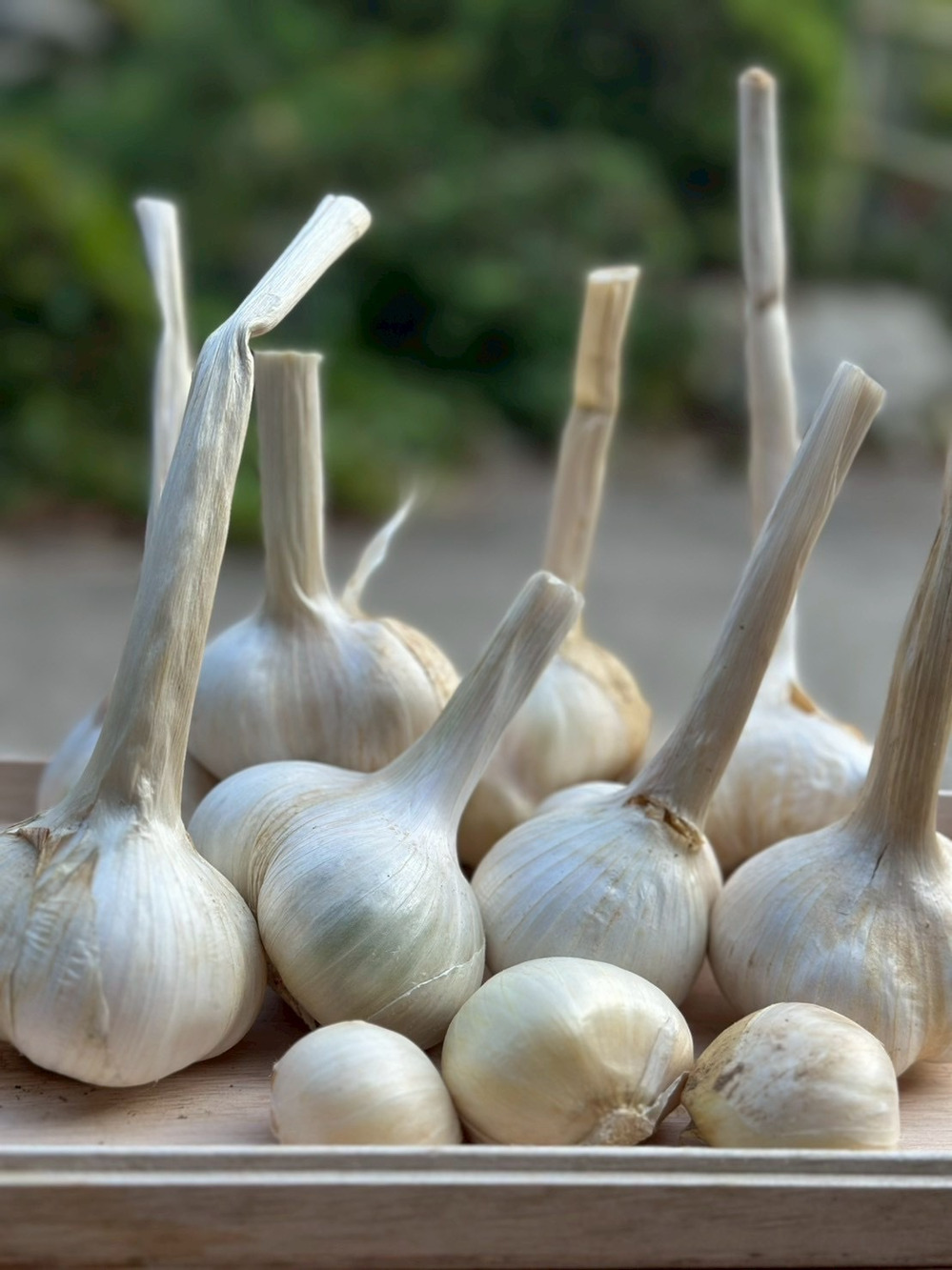 とっても大きなにんにくができました、みずみずしくて、爽やかな香りが特徴のにんにくです。