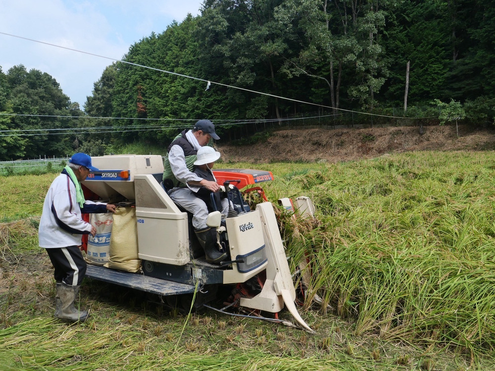 澄みわたる秋空の下、今年も奈良県山添の新米の収穫を迎えました。