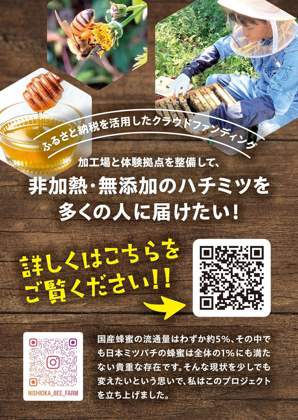 この蜂蜜には、地元の自然の豊かさがぎゅっと詰まっています。しかし近年、ミツバチの減少が進み、国産蜂蜜は市場全体の約5%、日本ミツバチの蜂蜜に至っては1%未満という大変貴重な存在になっています。