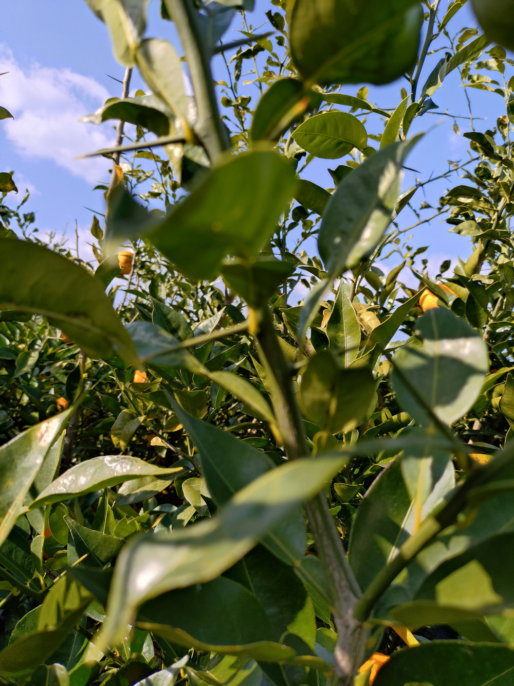写真は、柚子の樹です。とげが鋭く強いため収獲しずらく痛いです。