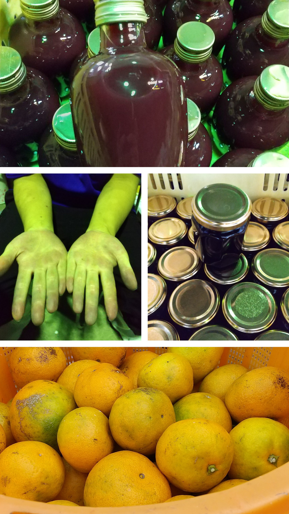 スロージューサーという機械で丁寧に搾り、釜で殺菌し瓶に入れてもう一度殺菌層で殺菌します。