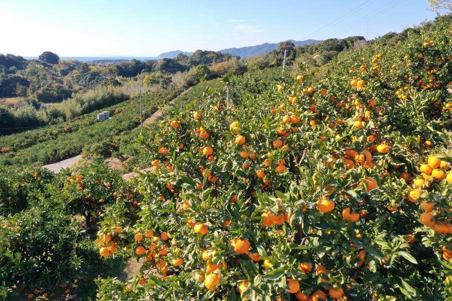 温暖な気候と豊かな自然に恵まれた和歌山県御坊市天田で、温州みかんの王様「宮川早生」だけを頑固一筋60年以上栽培しています。また、地球温暖化の抑制や生物多様性の保全に貢献する畑づくりを頑張っています(※CO2固定量は標準値の1.86倍です)。人に負けない、人が真似のできない、こだわり抜いて育てた最高の「頑固みかん」をぜひお楽しみください。