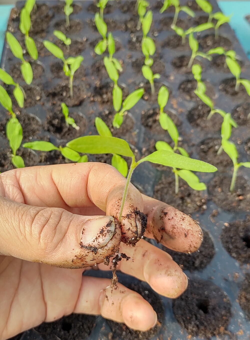 12月に種をまいて芽生えたトマトたち(王様トマト、フルティカ、まゆか)は、今ハウスで「鉢上げ」という、ちょっとだけ大きなトレイへ引っ越しの真っ最中🌱