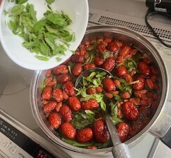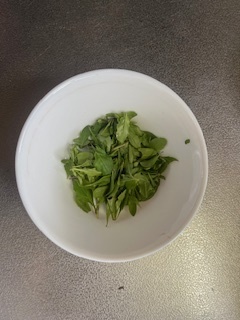 まず、よもぎを鍋で煮込みます。
