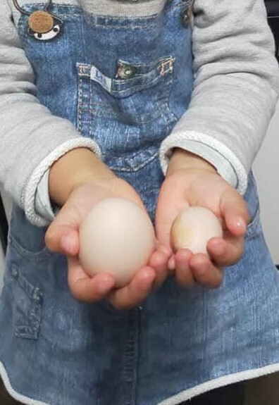 初卵は、産み始めの最初の数回だけ採れるとても貴重な卵。