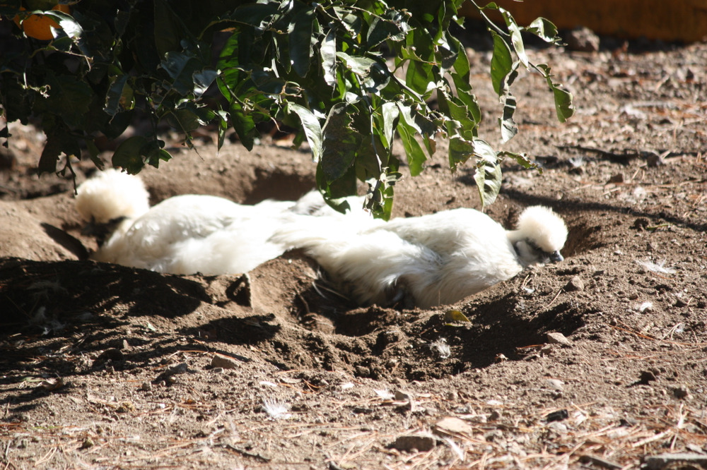 烏骨鶏は、地面にゴロンと寝転び、