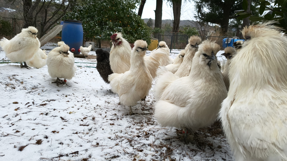 烏骨鶏は、ふわふわの羽毛を持つ一方で、