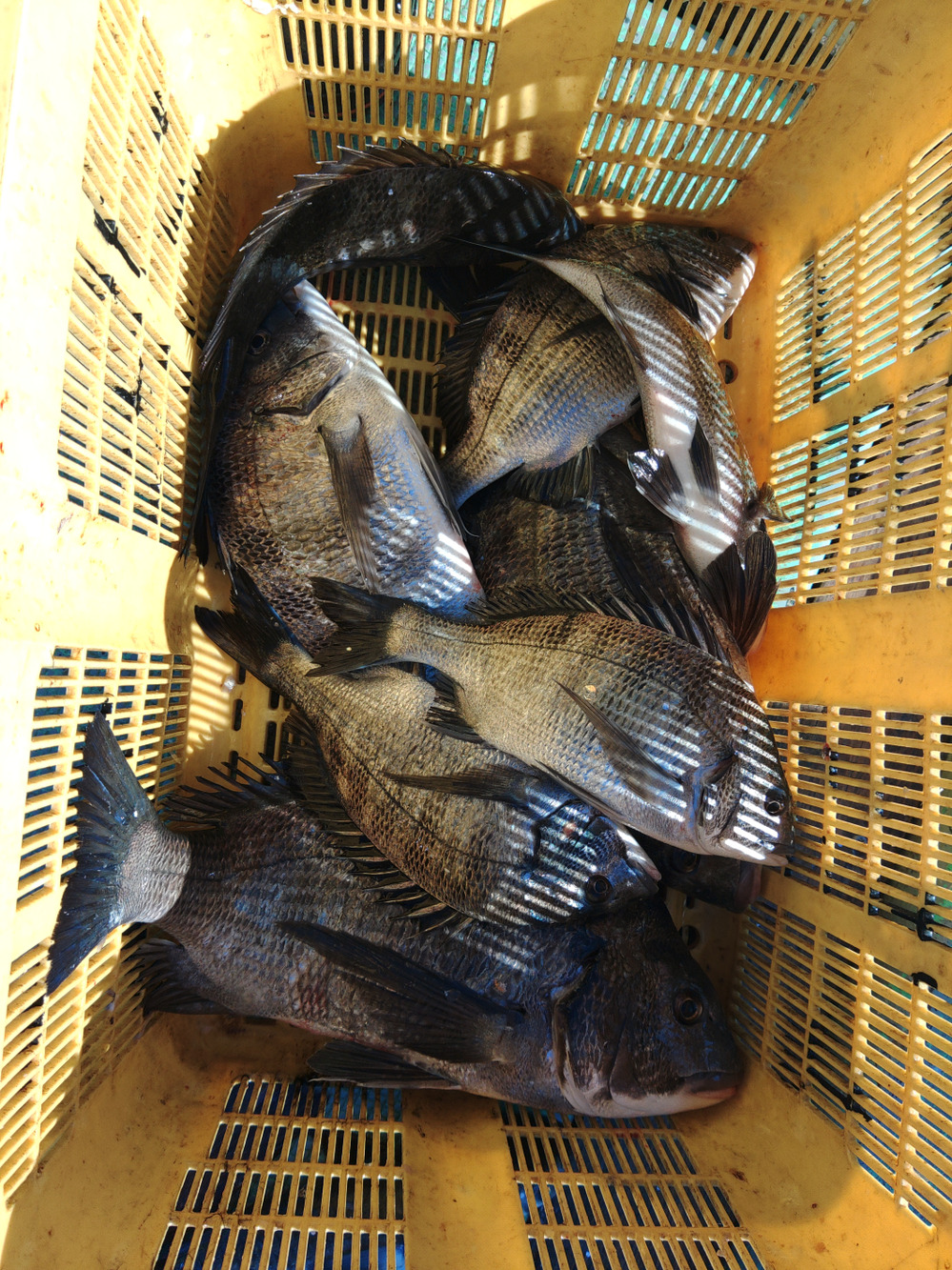 黒鯛が網に入りはじめました。