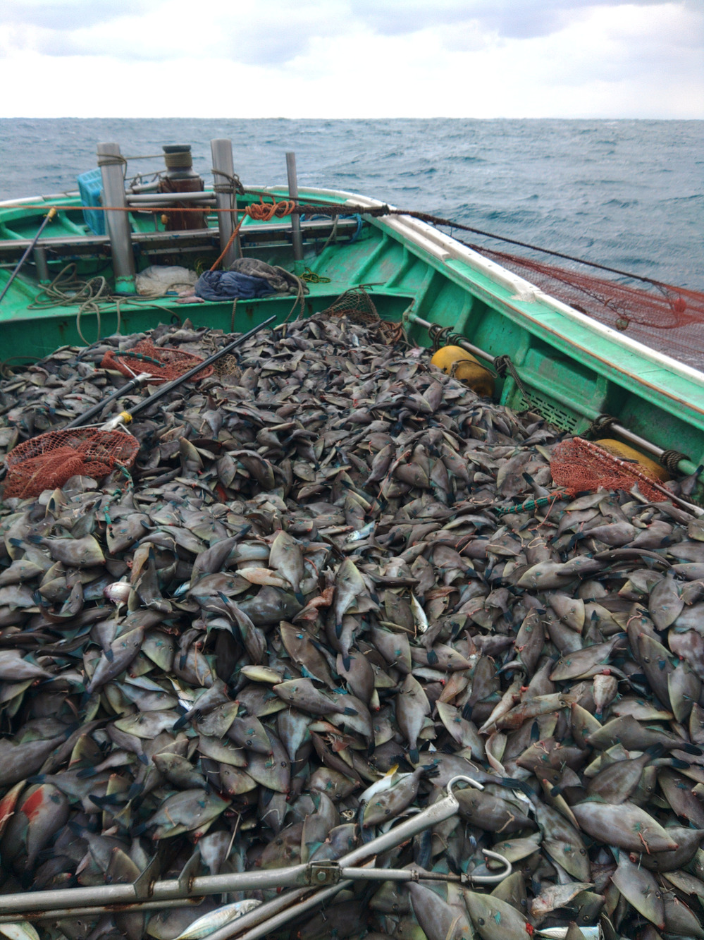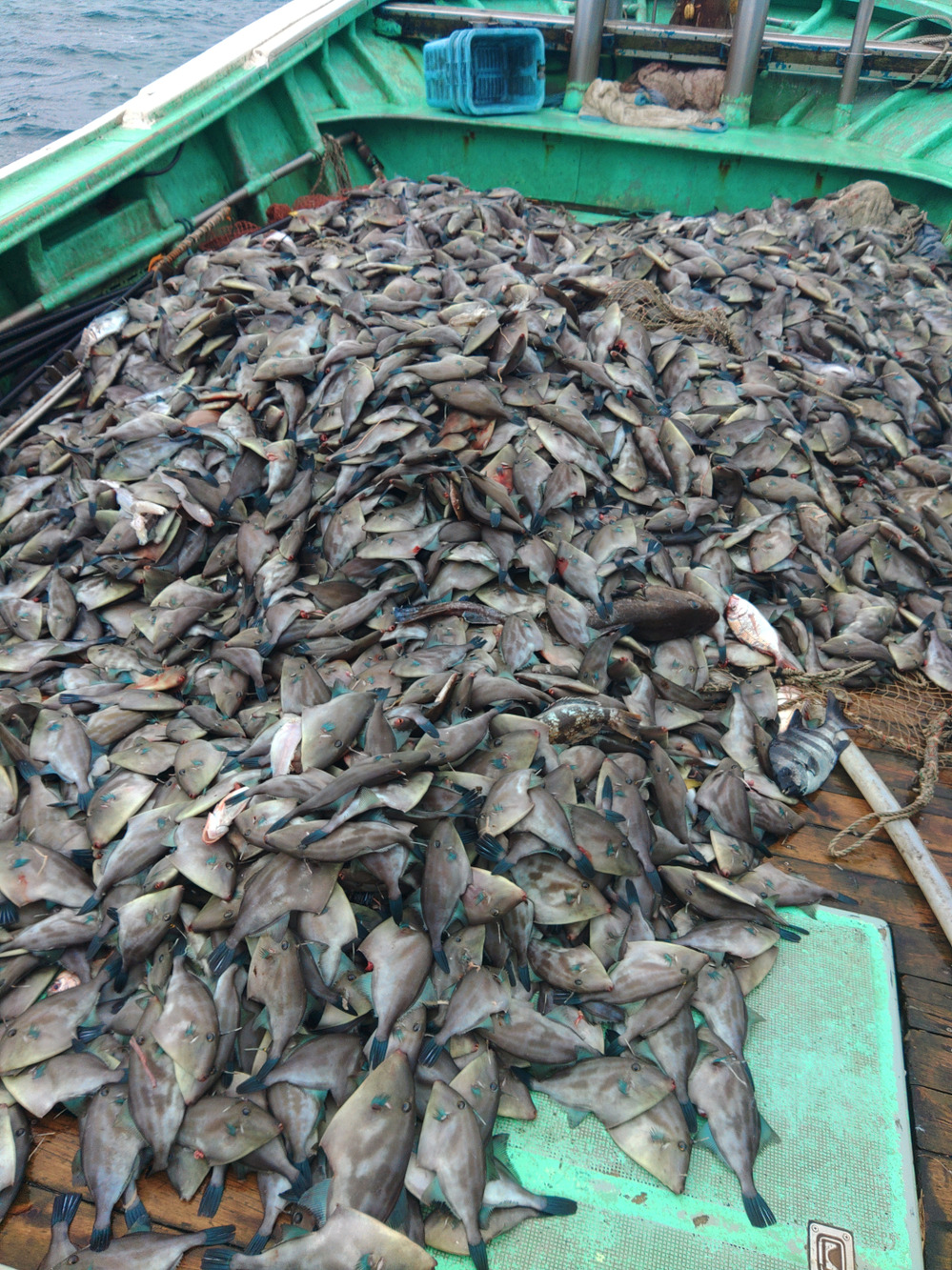 経験上、こうした大荒れのあとは網にたくさんのウマヅラハギが入ります。