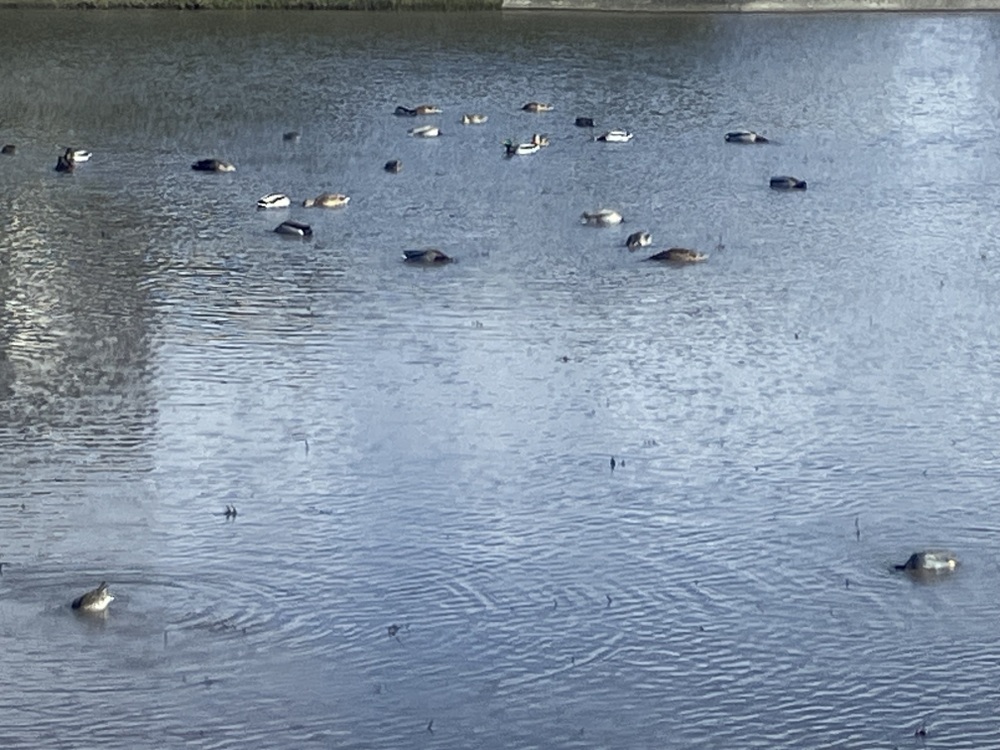 7つの湖のように冬期湛水の水田には、11月頃からシベリアからマガモの集団が来ます。他にもアオサギ、コサギ、オオサギ、シギ、鵜、カラス等水鳥や野鳥がカエルや餌となる微生物目当てに水田を泳いでいる様子を見ると楽園にいるようで、大変癒されます。