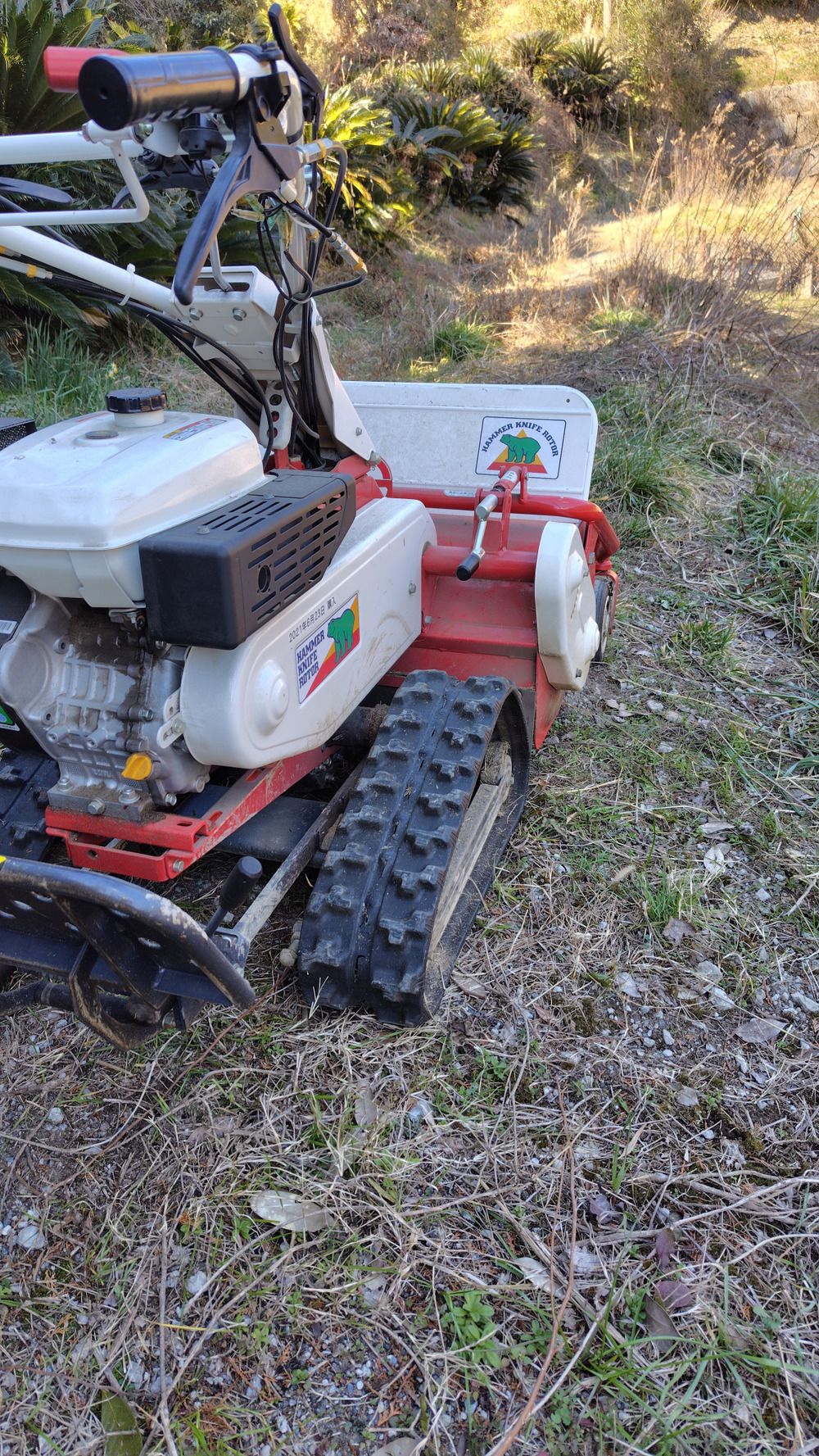 そのため、耕作放棄地を再生させるためまずは草刈り作業を開始。ハンマーナイフモアと刈払機を使って、まずは10a(1,000㎡)の作業。