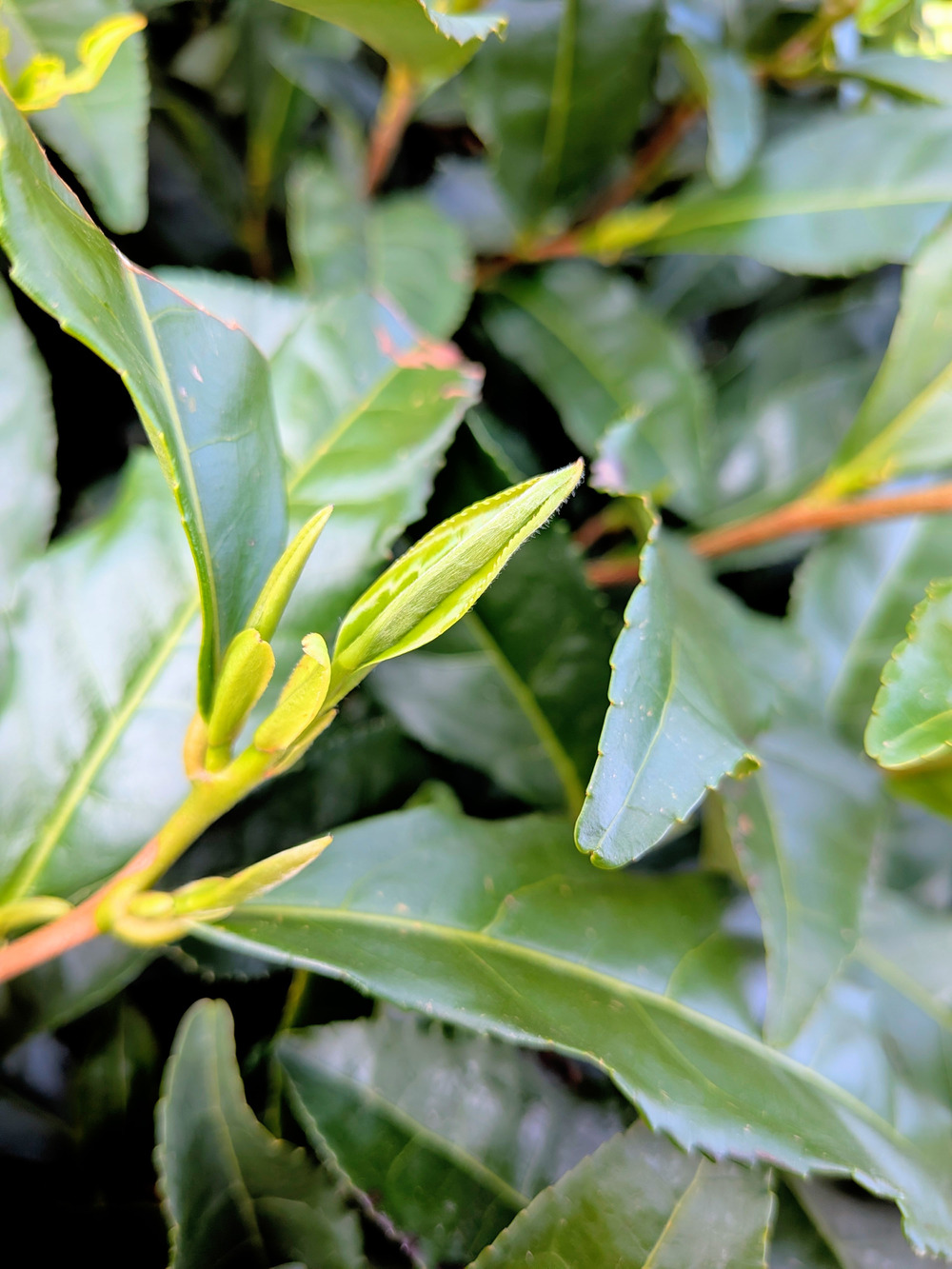 蕾が少しずつ開いて、茶の葉になっていきます。