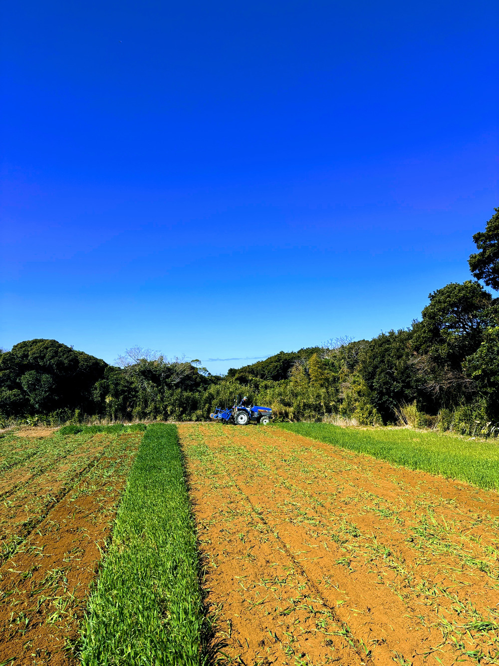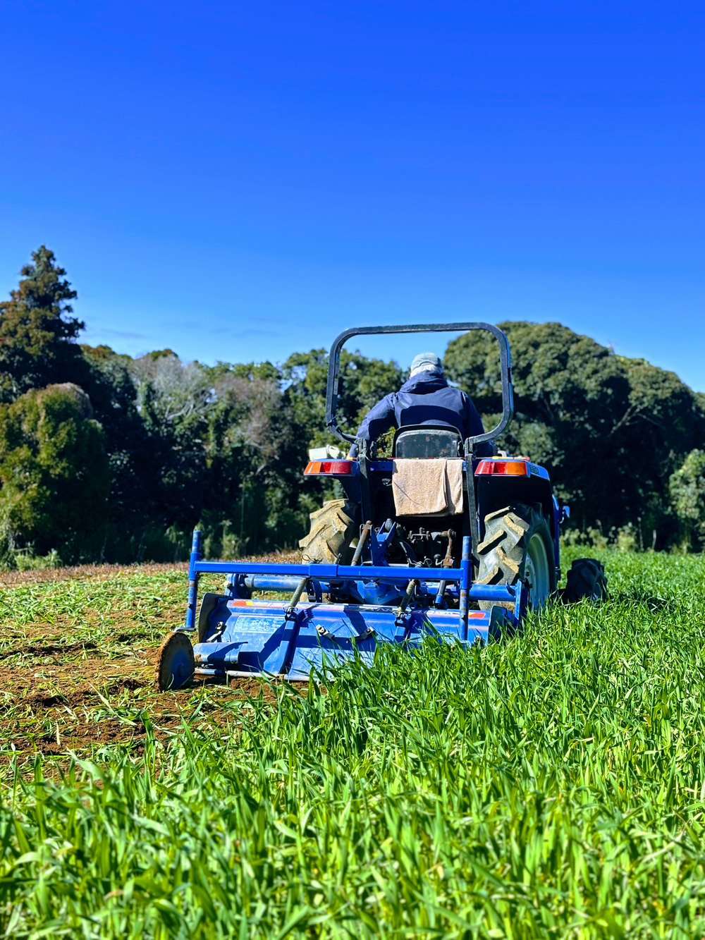写真は、燕麦(えんばく)を土にすき込む作業の様子です。