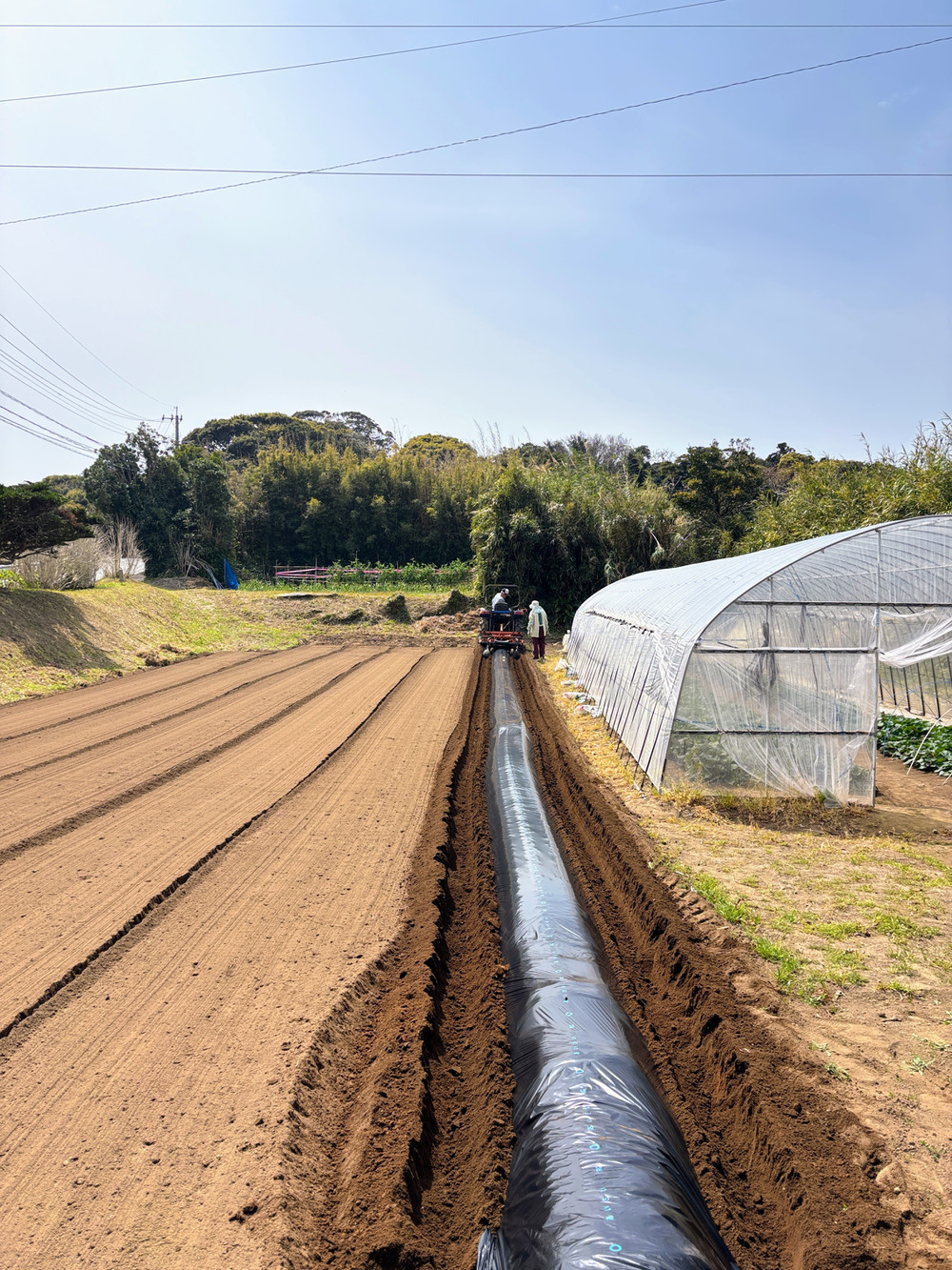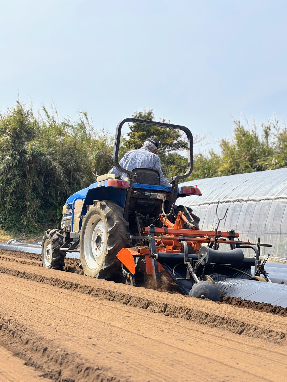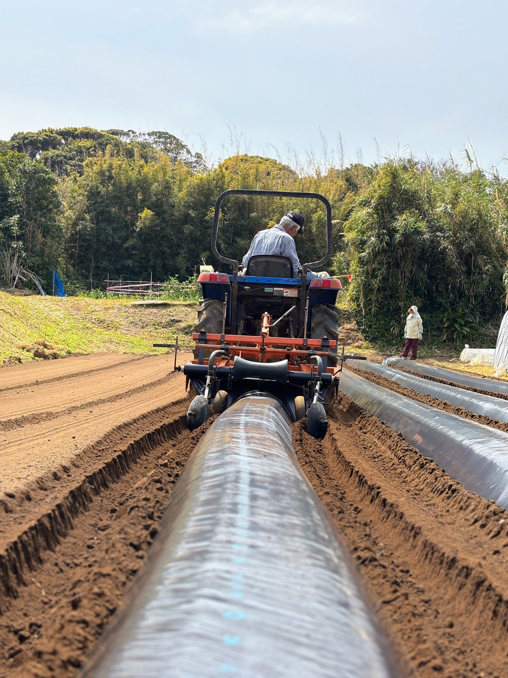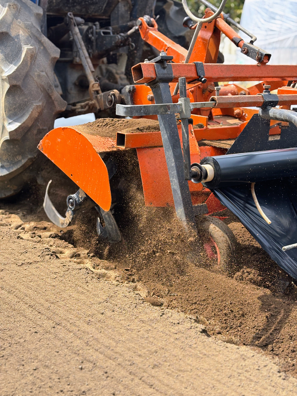 安納芋づくりで欠かせない工程のひとつが、畝立てです。