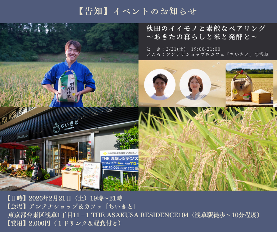 この度なんと、『アンテナショップ&カフェ ちいきと』さんと『秋田イイモノ』さんのイベントにゲスト参戦する事が決定しました!