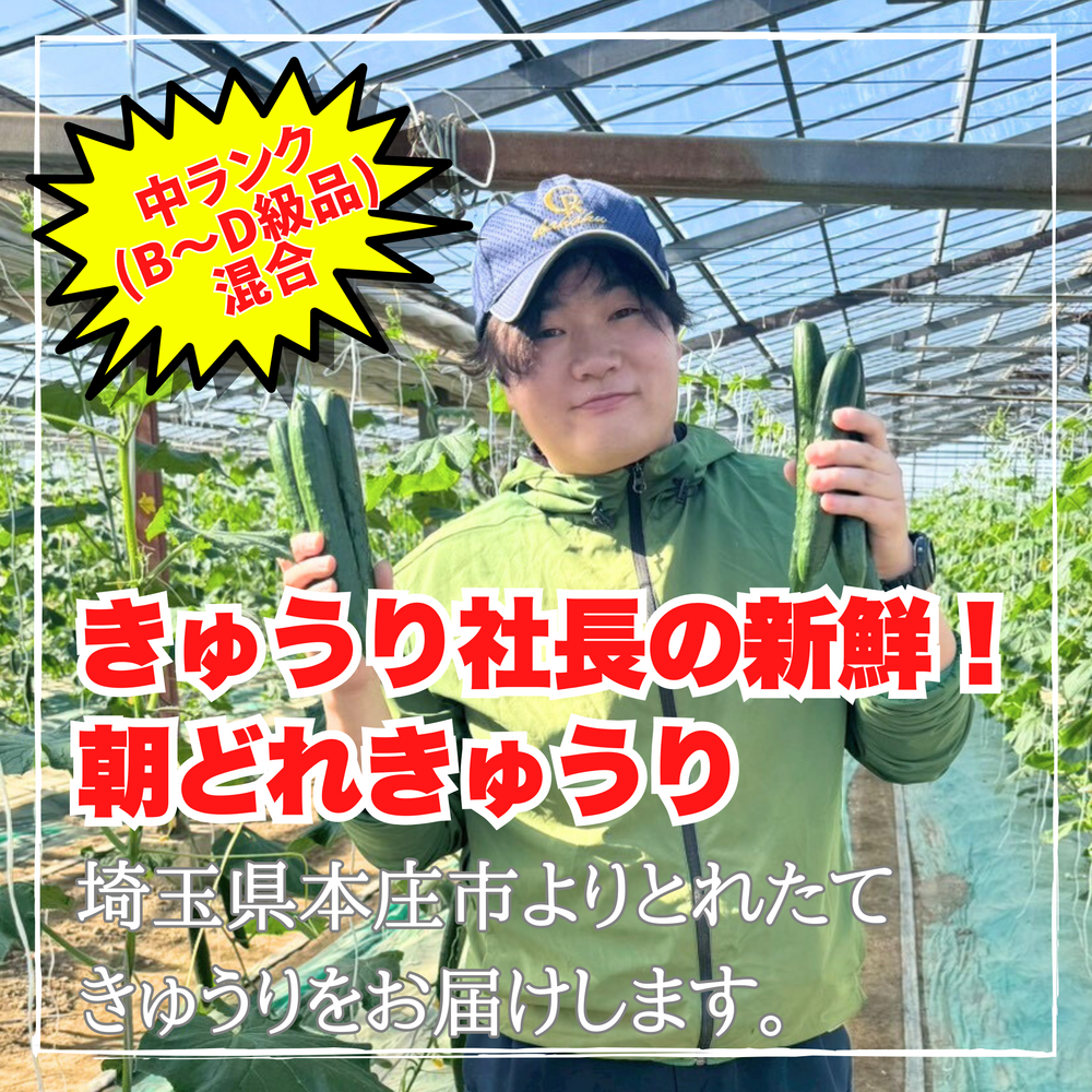 【味や実入りはA級品】きゅうり社長の朝どれ新鮮きゅうり!埼玉本庄産/不揃い訳あり/常温配送3㎏(15〜20本)