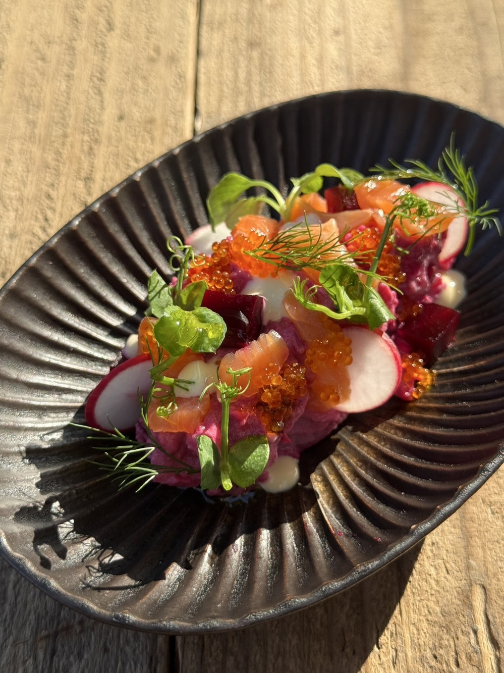 白いお野菜をビーツパウダーの色鮮やかなピクルス液に浸けることでグラデーションの美しいワンランクの上のピクルスに仕立てます。