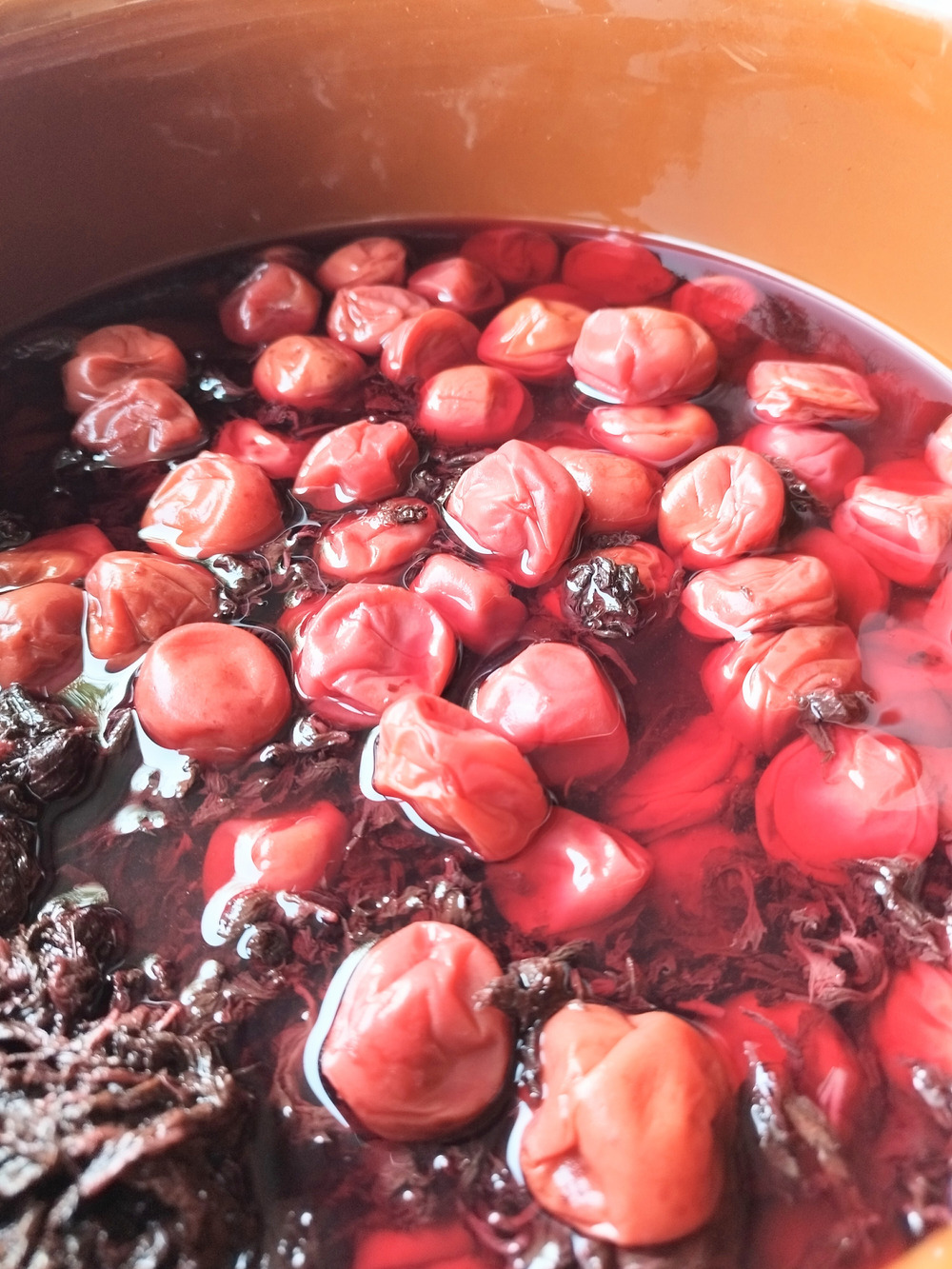 梅干しは、自然栽培の梅と自家栽培の赤紫蘇、良質な天日塩で作っています。