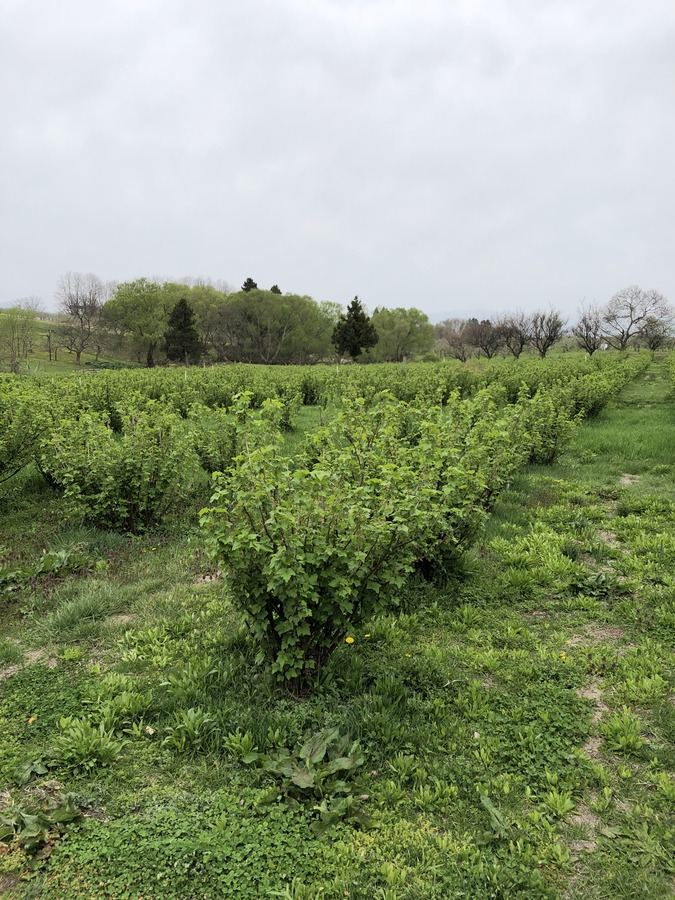 毎年、雪の量が多く1.5mのカシスの木が見えなくなる厳しい所で栽培しています。