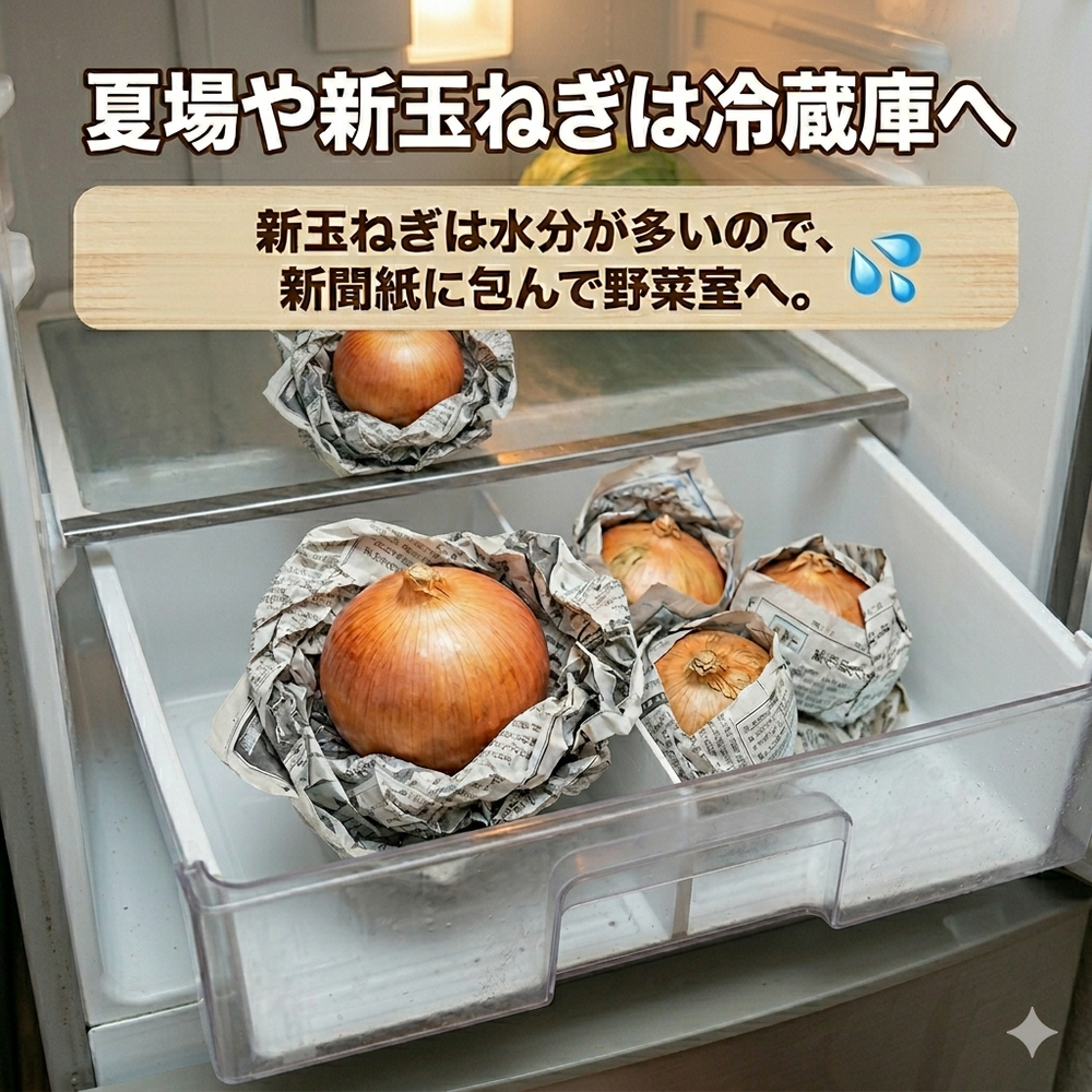 ・夏場や新玉ねぎは「野菜室」へ。