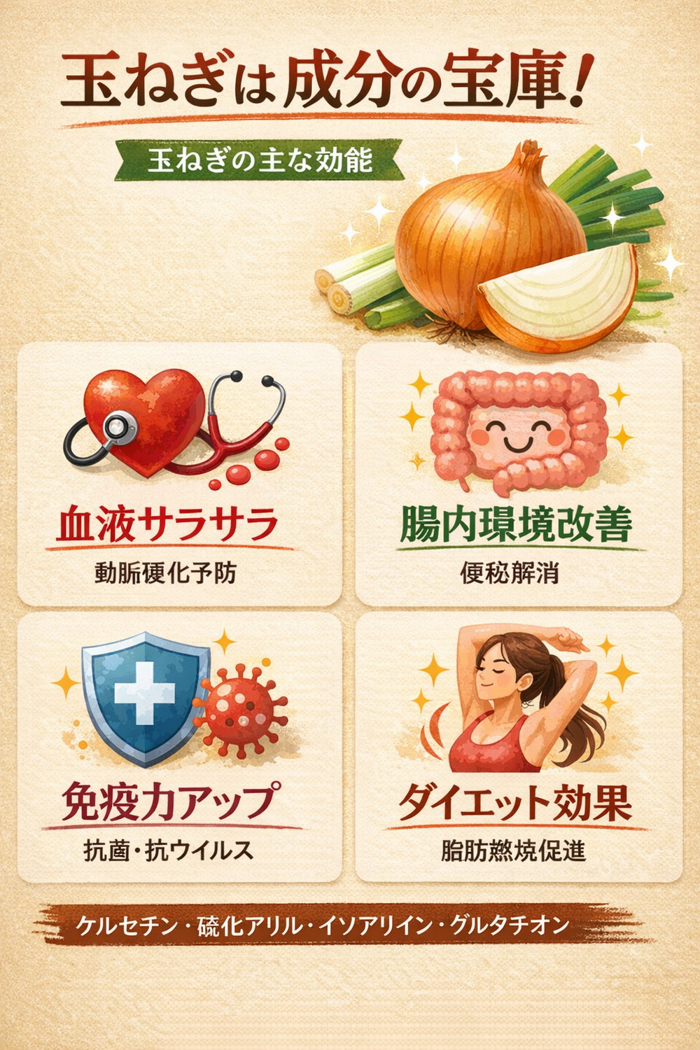 今回は、玉ねぎの4つの主要成分と驚きの