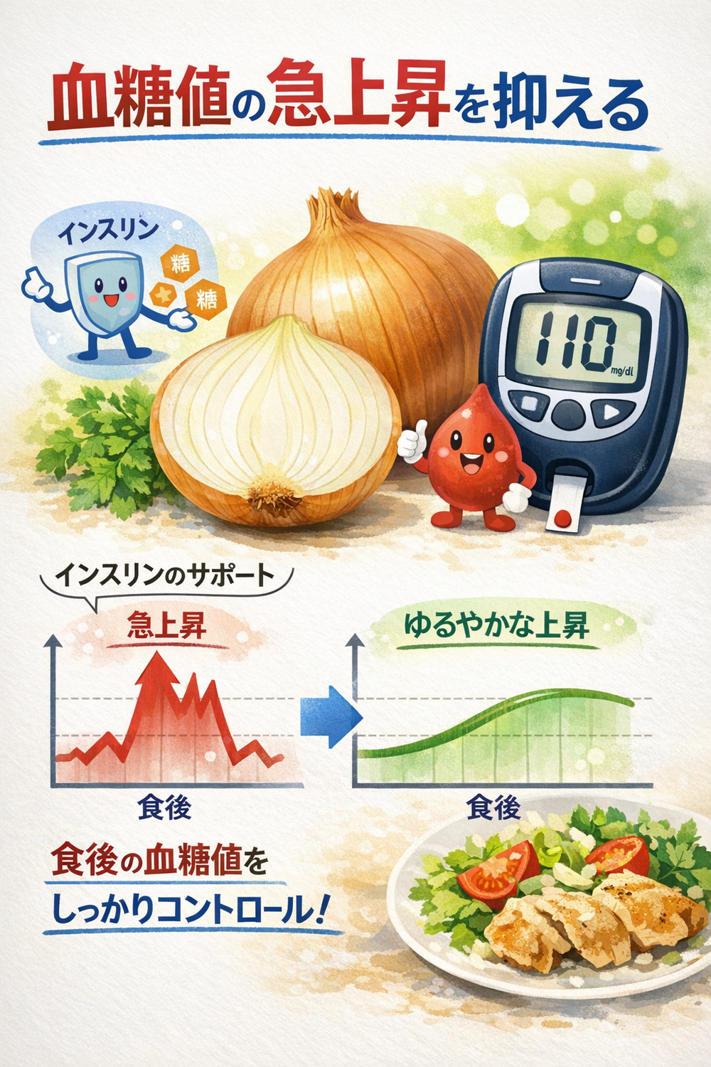 食後の血糖値の急上昇を抑え、インスリンの