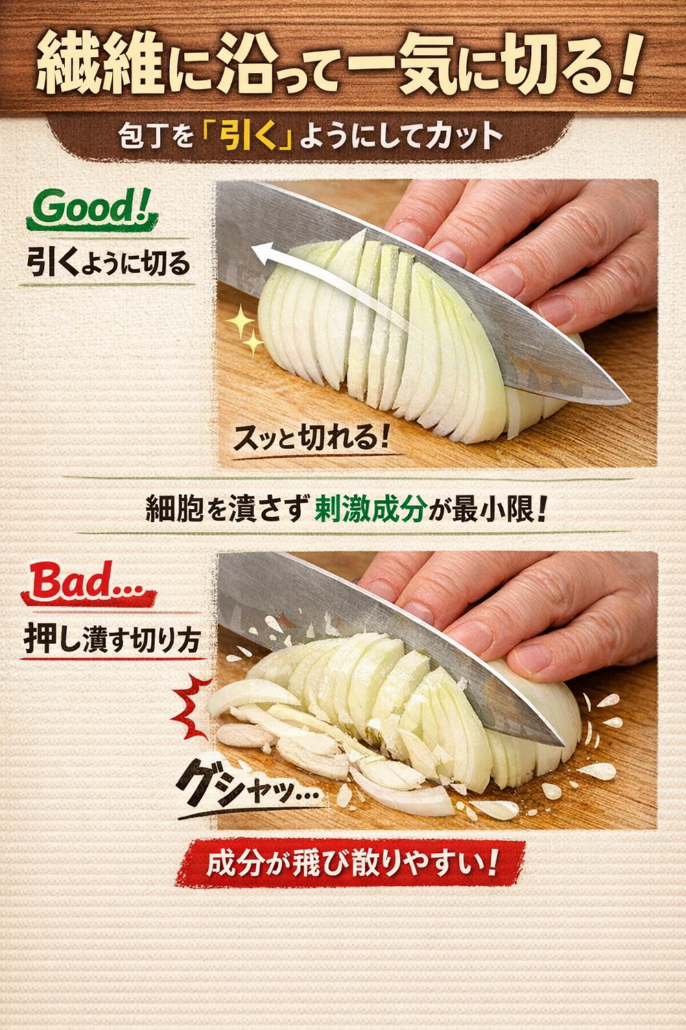 「涙が出にくい切り方のコツ」を