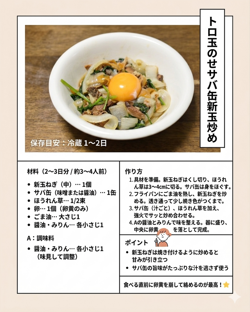 【春の絶品】とろ玉のせサバ缶と新玉ねぎの甘辛炒め