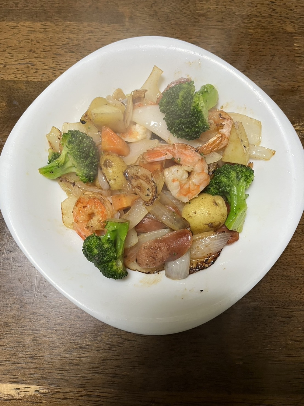 海老の色が変わったら、新玉ねぎ、加熱済みの