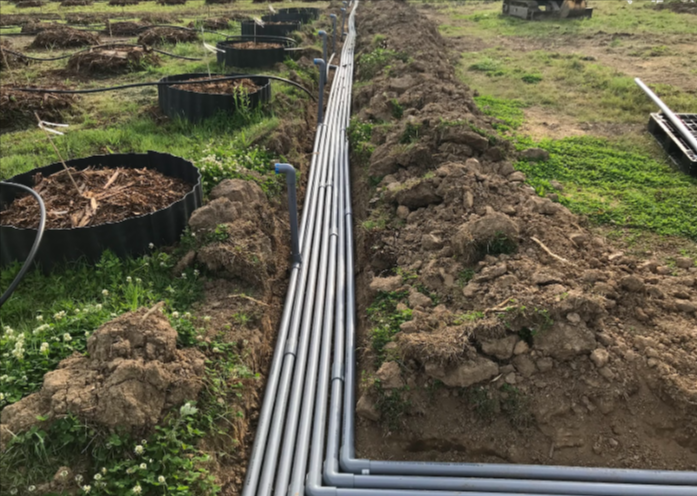 やっと780個の畝を作り終わったときには、定植に最適な時期が過ぎており、急いで次の作業、潅水システムの設置作業に入らなければなりませんでした。