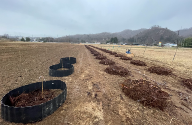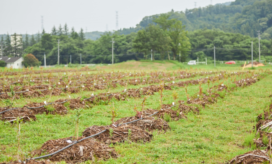 雑草はなくなり整地した圃場に畝を作って780本の苗を植え付けました。
