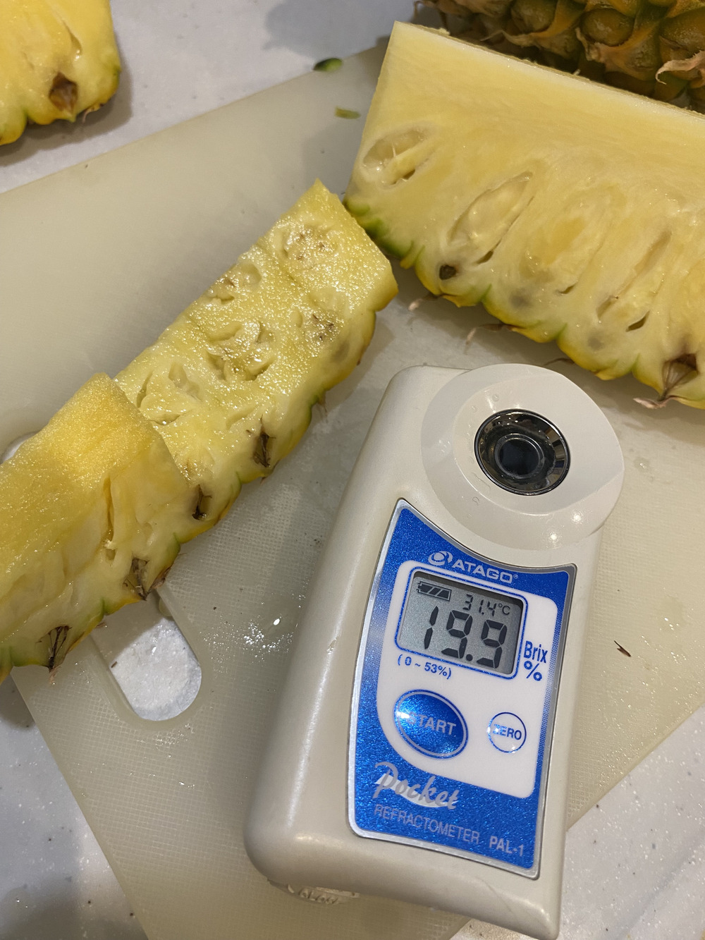 今年はとても幸先が良く、初収穫でポコットパインも19.9度とほぼ20度に近い糖度となりました!