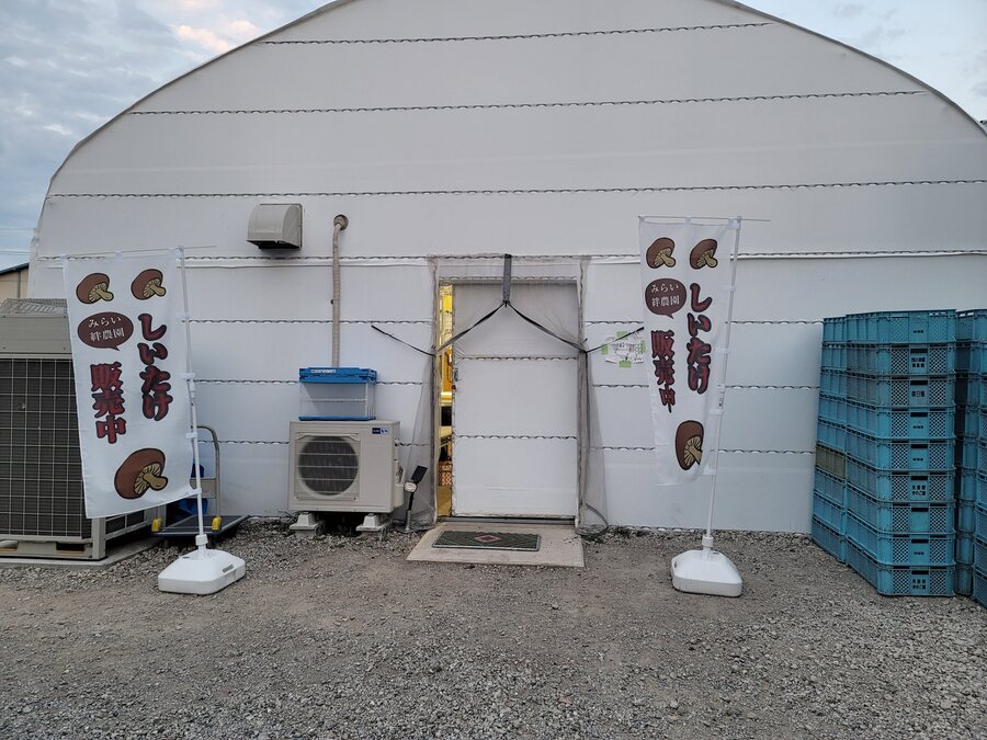 みらい絆農園としてビニールハウスで菌床しいたけ栽培をしています。