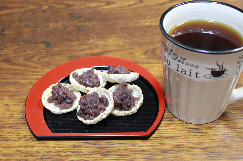 と言う事で、少しばかり私も玄米せんべいにあんこをチョイス。