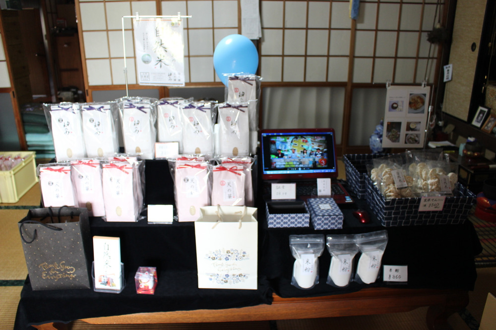 午前11時~午後5時、エルガーラ・パサージュ広場で自然栽培米・玄米せんべい・自然米米粉の販売を行います。