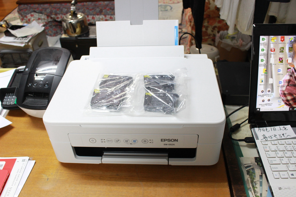 代用品が無いかと尋ねますと、Windowsのバージョンを聞かれ、10という事で1台ありましたが、調子が悪く別に購入しないとダメかと考えていると、新品のEPSONインクジェットプリンターを、店内から持って来られたのです。その新品を無料貸し出しして頂きました。